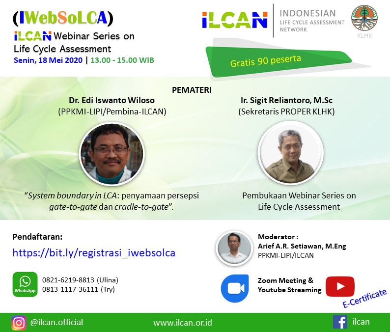 IWebSoLCA ke-2 kembali hadir untuk membagikan pengetahuan terkait LCA. Kali ini akan fokus pada “System Boundary in LCA: penyamaan persepsi gate-to-gate dan cradle-to-gate“.
